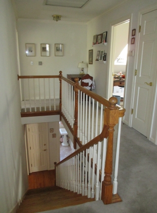 Originally this was a Spanish style single floor cottage built in 1930. It was very successfully redesigned into a two floor Tudor style residence nearly twenty-five years ago. The lower and upper hallways aligned beautifully, but the finishes were never coordinated. Now both levels feature Wilton carpet runners by Stark, extensive recessed lighting and a well displayed art collection. Note the contrasting handrail in satin black which draws the eye from one level to the next. (2012-2014)