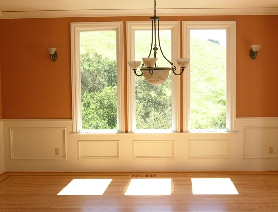 The original wainscoting in the dining room was an attempt to make the space more refined. It ended up making the space look pedestrian and visually lowered the ceiling height. The use of simple, rich wall covering, paired with very unstructured full length wool draperies sets the stage for beautifully refined, classic furnishings. (2006-2007)
