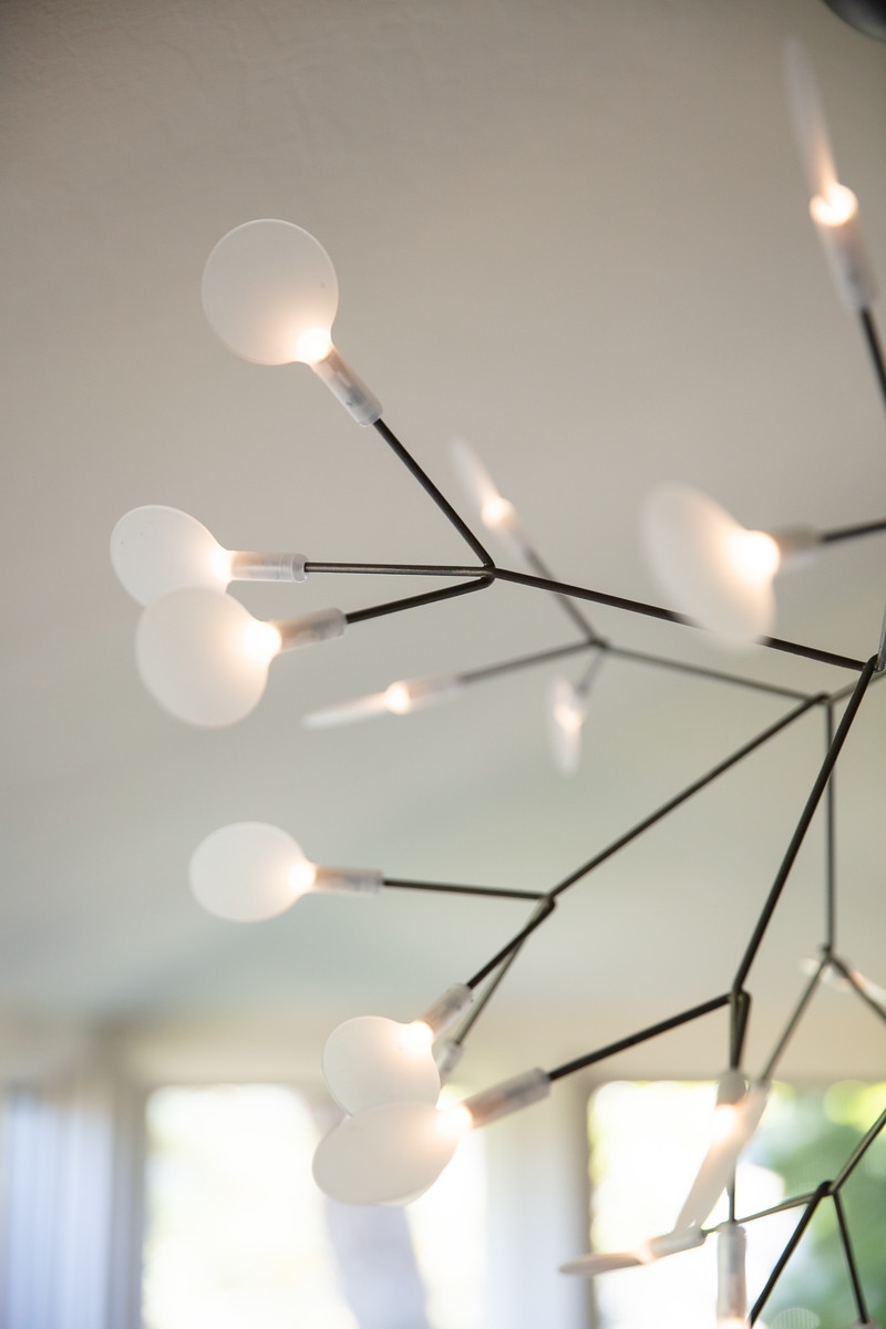 Airy and light, this modern Dutch lighting piece adds some hipness to this historic antique-filled home. (2019)