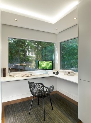 We were approached three years ago to do a comprehensive rethinking of the structure, spaces and the exterior envelope. We hope you will enjoy this preview of the greatly enlarged and updated kitchen and home office. (2011-2014)