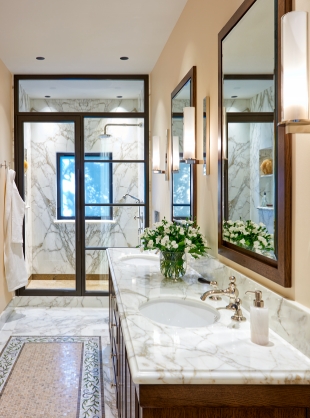 The style moves from whimsical to "girlie", from traditional to eclectic. Throughout we have incorporated the finest fittings, fixtures, hardware and finishes. Lighting is comprehensive and elegantly folded into the ceiling. Honed and polished Italian marble, limestone, volcanic tiles and rough hewn posts and beams give character to this once rather plain home.