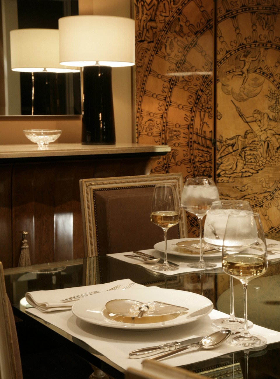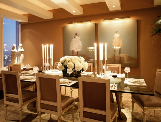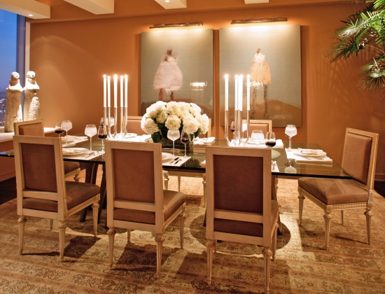 Our goal was to create an elegant room that was neither contemporary nor traditional in style. It was to be a place that one could linger and feel grounded in, despite living 52 floors above the San Francisco Bay. A beautiful collection of carefully curated art, beautifully lighted by Randall Whitehead, enhances the timeless feel of this space. Note the hypnotic diptych by Bay Area figurative artist Marianne Kolb. (2009)